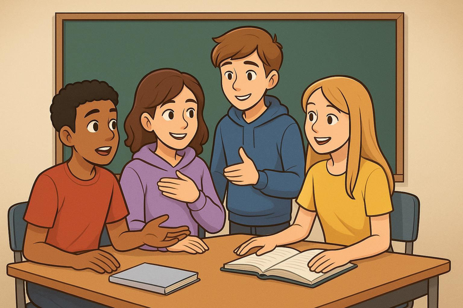 The discussion opens with a clear objective to extract personal school experiences from younger participants.