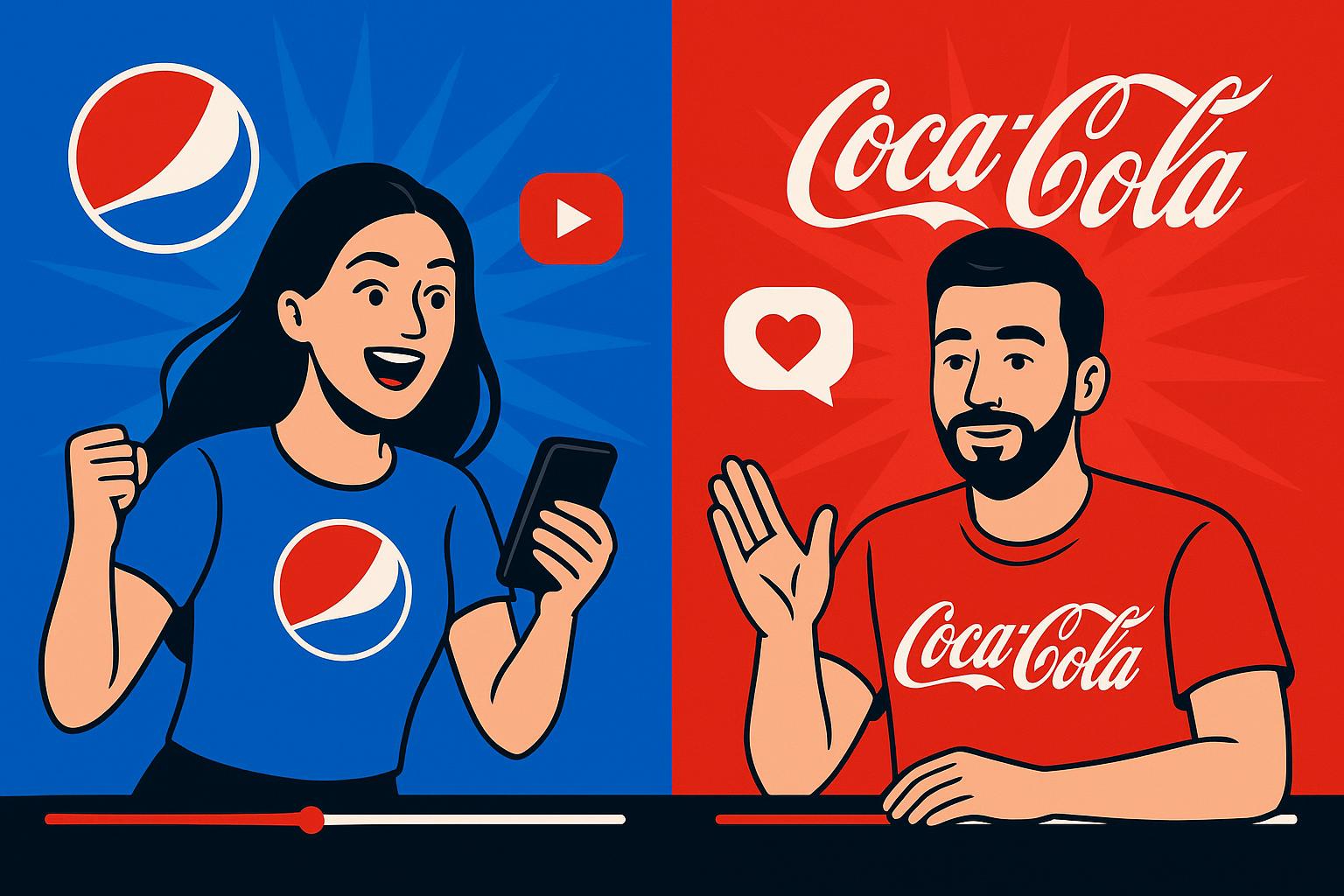 Videos in both groups average roughly two topic clusters per video (Pepsi 2.33, Coca‑Cola 2.0), favoring focused, multi‑point narratives rather than long, single‑thread pieces.